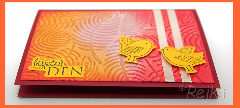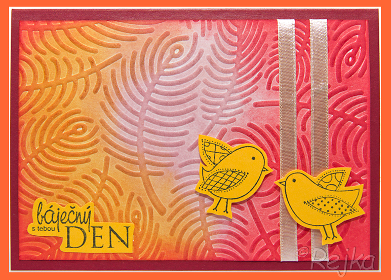 Toto přání vzniklo na základě jedné ze šablon v rámci říjnové soutěže Hero Arts. Opět jsem embossovala, inkoustovala a razítkovala a moc jsem si to užívala: