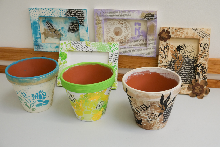 V sobotu 19. 3. jsem vedla akreditovaný kurz na Mixed média – Obrácený rámeček a květináč, ten se konal v Davoně v Praze: