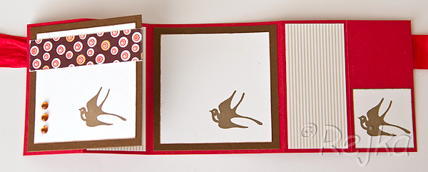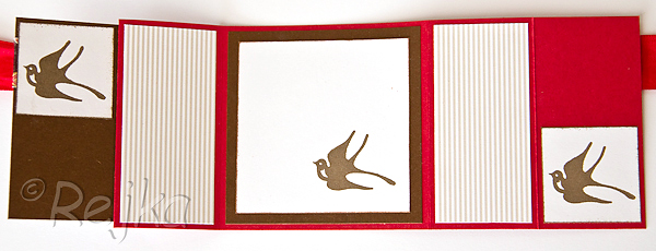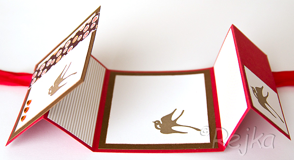 Potřebovala jsem vyzkoušet nové razítkovací polštářky Archival ink a tak vzniklo následující skládané přání. Chybí v něm texty, protože zatím nevím komu a k jaké příležitosti ho dám :).
